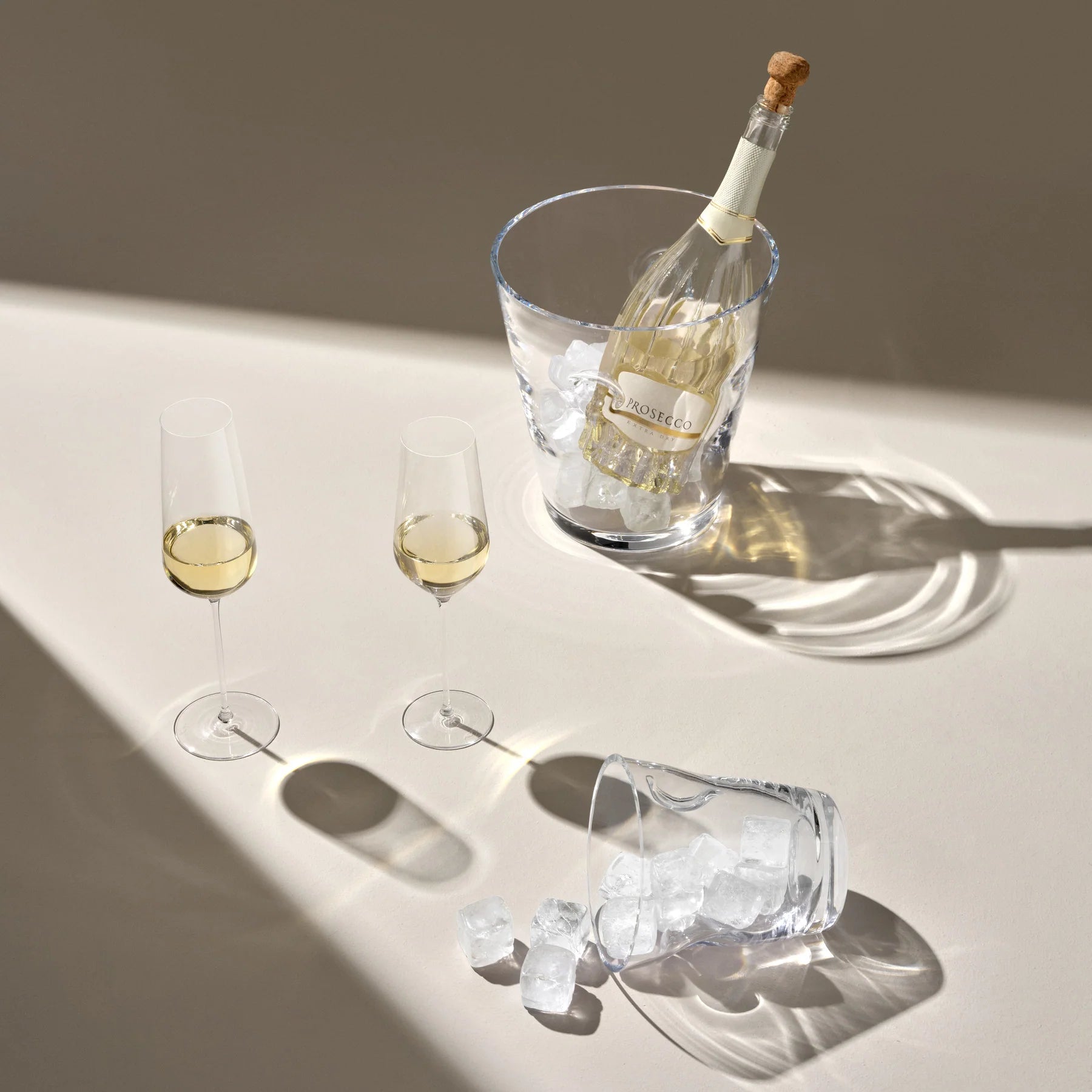 With a strong silhouette that almost defies its delicate crystalline glass composition, the NUDE Glacier magnum champagne cooler takes both functionality and aesthetics into account. Sharp yet comfortable, it presents a pair of elegant hand-pressed dimples that ensure a reliable grip when handling the ice.